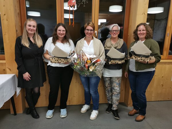 Foto Ehrungen v.l.: Jesika Wildhaber, Vermittlerin / Nadja Keel 10 Jahre / Claudia Keller 20 Jahre / Nadja Buschor 10 Jahre / Daniela Steiger 10 Jahre