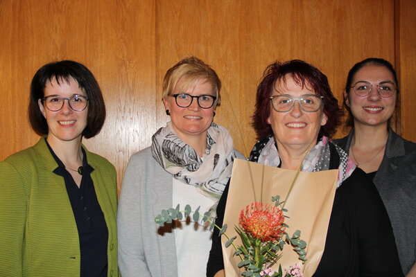 Foto: (v.l.): Karin Vonbank (Vermittlerin Altstätten-Eichberg), Ruth Kluser (Vermittlerin Rüthi-Oberriet), Karin Peter (20 Jahre Vorstandsarbeit), Julia Fernandez (Vermittlerin Rebstein-Marbach)