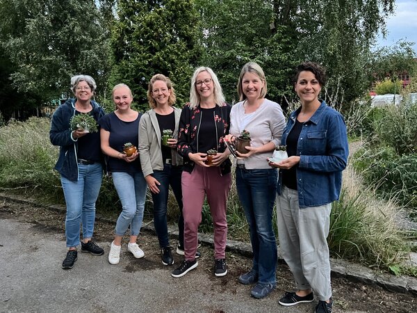 Foto anlässlich Teamevent im August 2025 (v.l.): Beatrice Buschor (25 Jahre), Jesika Wildhaber, Aline Keel, Monika Strebel (Vermittlerinnen), Marianne Sonderegger, Deborah Frei